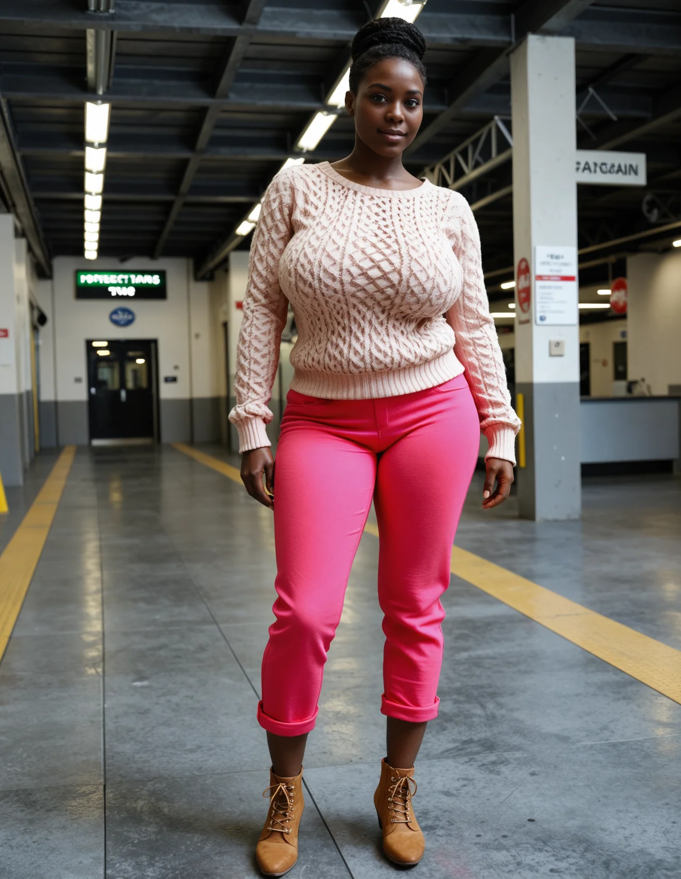 The image shows a young woman standing in a greenhouse with a high ceiling and large windows. She is wearing a beige tank top and bright pink high-waisted pants. She has black ankle boots with a chunky heel. Her hair is styled in a high bun and she is looking directly at the camera with a confident expression. The greenhouse is filled with potted plants and there is a bench in the background.The image shows a young woman standing in a greenhouse. She is wearing a white sweater and bright pink trousers. She has black ankle boots and her hair is styled in a sleek bun. The greenhouse has a high ceiling with a skylight, allowing natural light to enter. There are several potted plants in the background, adding a touch of greenery to the space. The woman is posing with one hand on her hip and the other resting on her thigh.The image shows a young woman standing in an empty warehouse or industrial space. She is wearing a white long-sleeved sweater and bright pink trousers. The woman is standing with her hands in her pockets and is looking directly at the camera with a serious expression on her face. She has short dark hair styled in a sleek bob and is wearing brown ankle boots. The background shows the interior of the warehouse with concrete walls and a high ceiling with overhead lights. The overall mood of the image is serious and confident.The image shows a young woman walking in a modern building with a high ceiling and large windows. She is wearing a white sweater and bright pink high-waisted trousers. She has a pair of beige ankle boots on her feet and her hair is styled in a sleek bun. The woman is walking confidently with her hands in her pockets and is looking directly at the camera. The background is blurred, but it appears to be an indoor space with a tiled floor and beige walls.The image shows a young woman standing on a balcony overlooking a city skyline. She is wearing a white long-sleeved sweater with a round neckline and pink pants. She has her hair styled in a high bun and is wearing beige ankle boots. The woman is posing with one hand on her hip and the other resting on her thigh. The background shows a cityscape with buildings and skyscrapers. The sky is blue and the sun is setting, casting a warm glow over the scene.The image shows a young woman standing in a garden with palm trees in the background. She is wearing a white sweater and bright pink high-waisted pants. The pants are tight-fitting and accentuate her curves. She has a pair of black ankle boots on her feet and her hair is styled in a sleek updo. The woman is posing with one hand on her hip and the other resting on her thigh. She appears to be confident and relaxed.The image shows a young woman standing on a wooden pier near the ocean with a lighthouse in the background. She is wearing a beige sweater and bright pink leggings that are tight-fitting and accentuate her curves. She has her back to the camera, showing off her curves, and her hair is styled in a high bun with a bun on top. The woman is standing with one hand on her hip and the other resting on the railing of the pier. The ocean is calm and the lighthouse is visible in the distance. The sky is overcast and the overall mood of the image is peaceful and serene.The image shows a young woman standing in an old, dilapidated room with peeling paint and peeling walls. She is wearing a white off-the-shoulder sweater and pink high-waisted pants. Her hair is styled in a high bun and she is wearing brown ankle boots. The woman is standing with her back to the camera, facing away from the camera and looking off to the side. She has a serious expression on her face and is looking directly at the camera. The room appears to be abandoned and there are pipes and pipes running along the walls.The image shows a young woman standing in a greenhouse with her back to the camera. She is wearing a white sweater and pink high-waisted pants. She has her hair styled in a high bun and is wearing brown ankle boots. The greenhouse has a glass roof and is filled with potted plants and flowers. The woman is posing with one hand on her hip and the other resting on her thigh. She appears to be confident and relaxed.The image shows a young woman standing in a greenhouse with a high ceiling and a glass roof. She is wearing a long-sleeved pink sweater and pink trousers, paired with black ankle boots. She has her hair styled in a high bun and is looking directly at the camera with a confident expression. The greenhouse is filled with potted plants and flowers, creating a lush and tropical atmosphere.The image shows a young woman standing on a rooftop with a city skyline in the background. She is wearing a white sweater and bright pink leggings that are high-waisted and fitted at the bottom. She has her back to the camera, showing off her curves, and is wearing brown ankle boots. Her hair is styled in a high bun and she is looking off to the side with a slight smile on her face. The sky is orange and pink, and the city skyline is visible in the distance.The image shows a young woman standing on a balcony with a city skyline in the background. She is wearing a white cable knit sweater and bright pink pants, paired with black ankle boots. She has short dark hair and is smiling at the camera. The balcony has a white railing and there are trees and buildings visible in the distance. The sky is blue and the overall mood of the image is cheerful and relaxed.The image shows a young woman standing on a cliff overlooking a beautiful mountain landscape. She is wearing a beige sweater and bright pink leggings that are tight-fitting and accentuate her curves. Her hair is styled in a high bun and she is wearing brown ankle boots. The woman is looking off into the distance with a slight smile on her face. The mountains in the background are covered in greenery and the sky is blue with a few clouds. The overall mood of the image is peaceful and serene.The image shows a young woman standing on a concrete pat